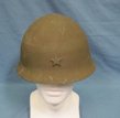 Original era manufacture. Near new example, blue steel shell with a very nice matt paint finish. White kanji inside the helmet indicating size large. Original star and both rivets, one prong of the left rivet is missing, other rivet has ist prongs but one is folded over the other.