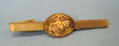 Original era manufacture. Nice quality gilded brass tie bar with a spring loaded alligator clip on its reverse.