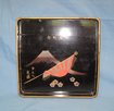 Original era manufacture. Lacquered wood tray with a handpainted interior. Measures roughly 9x9.5 inches, light chipping and flaking to the surfaces as usual.