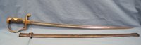 Original era manufacture. Issue sword as carried by mounted units of the German Army prior to the outbreak of WWII. The blade and blue steel scabbard bear the matching serial number of 5880 along with the makers code of CE/G with the letter G indicating a year of manufacture of 1935. Numerous waffenamt proofs appear on the blade, guard and scabbard attesting to the prewar quality of this weapon. The 28 inch polished steel blade is clean and straight with its leather bumper in place at the guard. The plastic grip retains its original twisted wire binding with some surface cracks to the plastic near the pommel. Typical scratching, dings and dents to the brass guard and pommel, leather finger loop torn. The blue steel scabbard has a few surface dents and evidence of a cleaning, throat screw is missing.