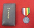 Original cased medal presented to mark the enthronement of the Emporer Hirohito in 1925. His reign became known as the Showa era and encompassed WWII. Silver medal with a multi colored ribbon. It is complete with its issue case. The lid is detached from the bottom. Normal age and wear.
