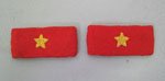 Original era manufacture. Red wool rectangles with green cotton backing. Single, individually sewn yellow wool star on each. Near new condition. One set left, some variations occur.