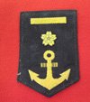 Original era manufacture. Yellow embroidered anchor on a black cotton backing which is sewn to white canvas. Enameled yellow cherry blossom in the center. Shows normal age and wear. General purpose rate worn on all uniforms including the green SNLF.