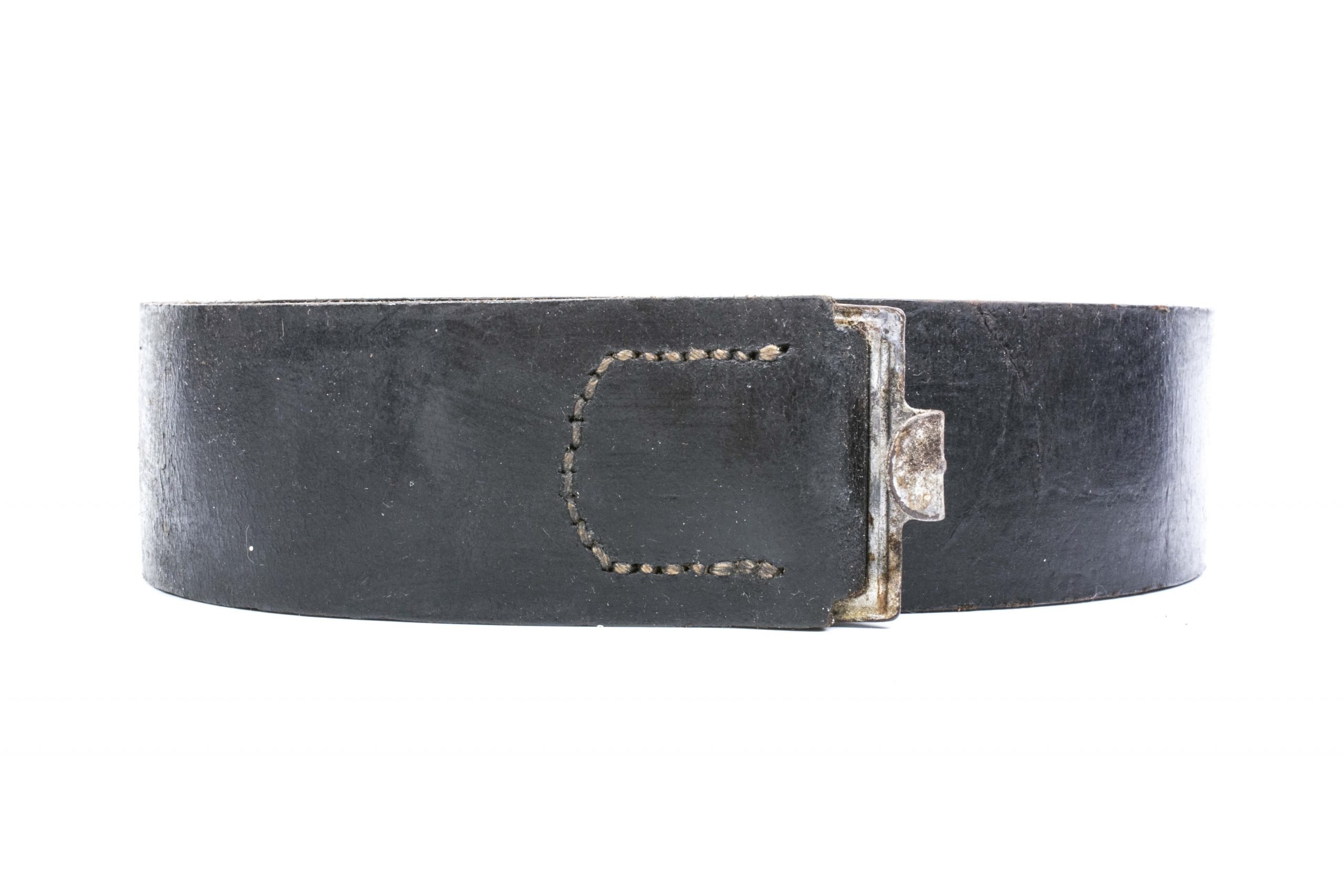 Textbook early equipment belt with hidden stitch tongue.