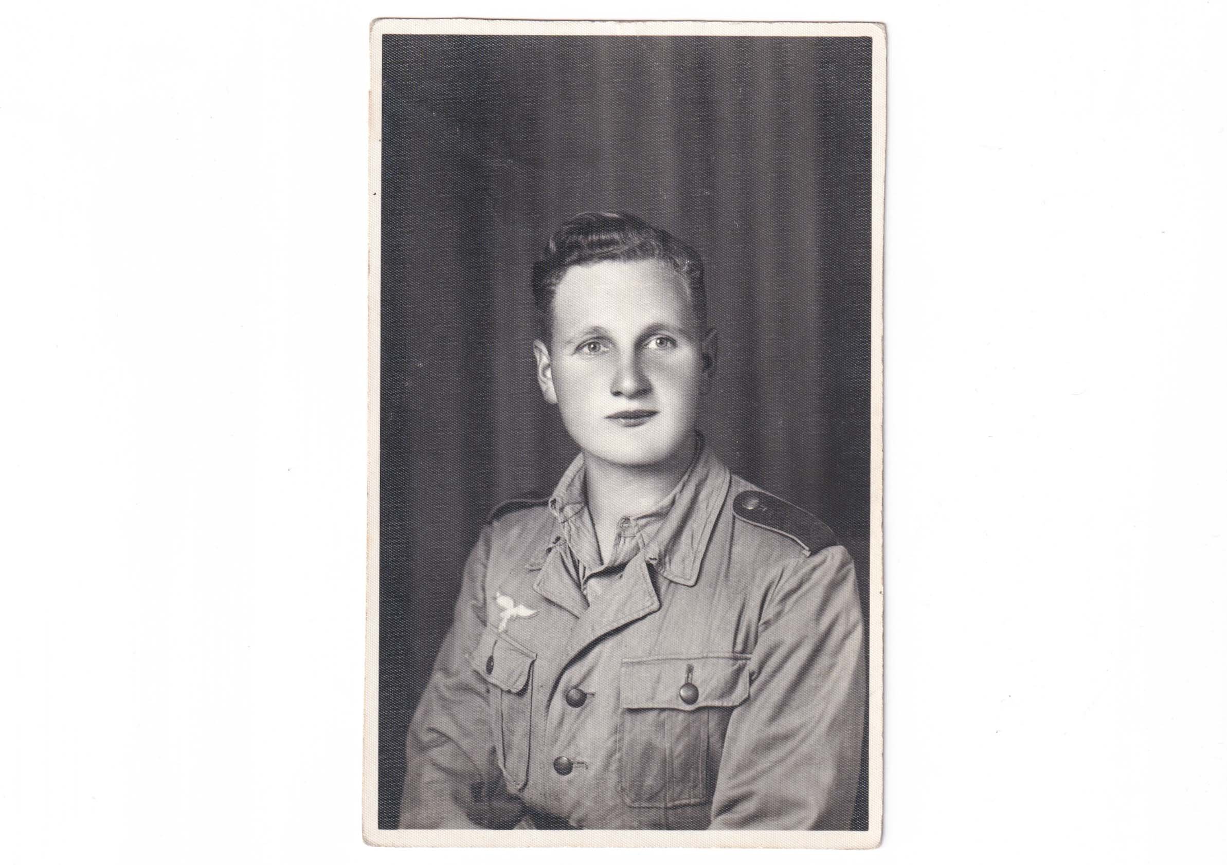 Excellent Luftwaffe postcard sized portrait picture of a soldier in full tropical uniform.