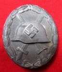 Original era manufacture. Zinc badge with normal age and wear, non-magnetic attaching pin, Maker Mark 107 (Carl Wild).