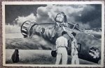 Italian WWII Patriotic Postcard, Machi-200 Fighter & Pilot