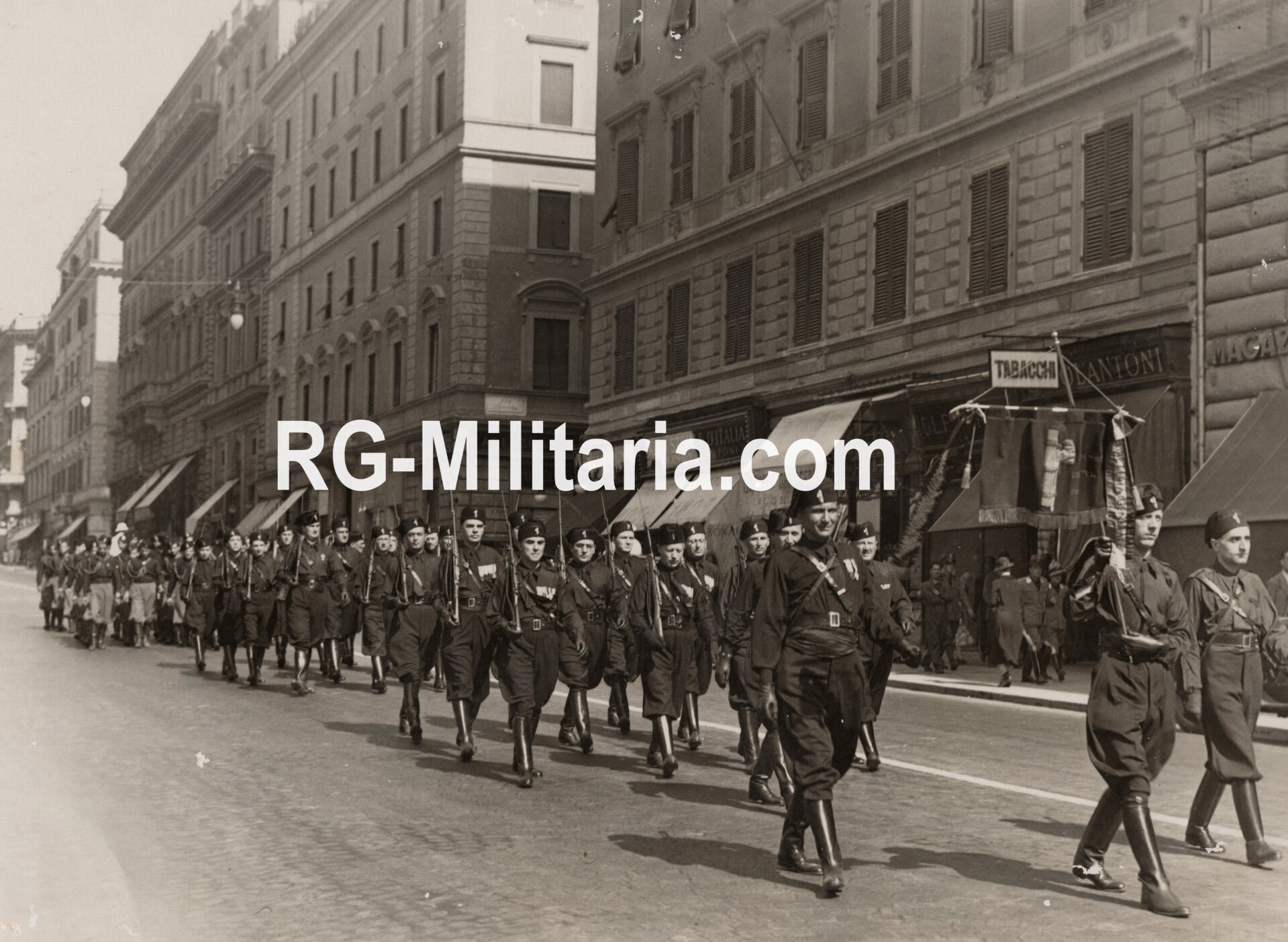 Originele Wo2 Duitse Persfoto - Italiaanse fascisten marcheren door Rome