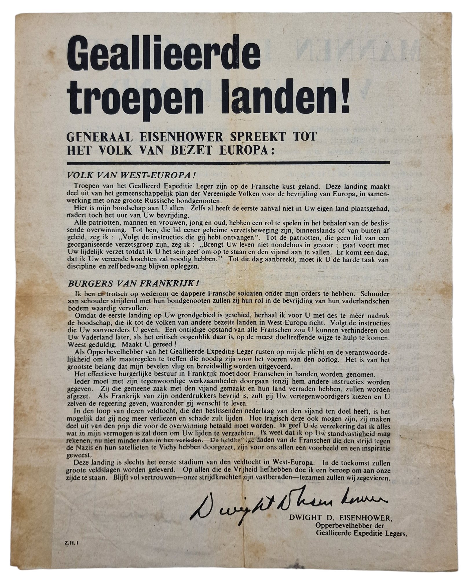 Original WW2 Allied Leaflet - ZH 1 ''Geallieerde torepen landen!'' D-Day (1944)