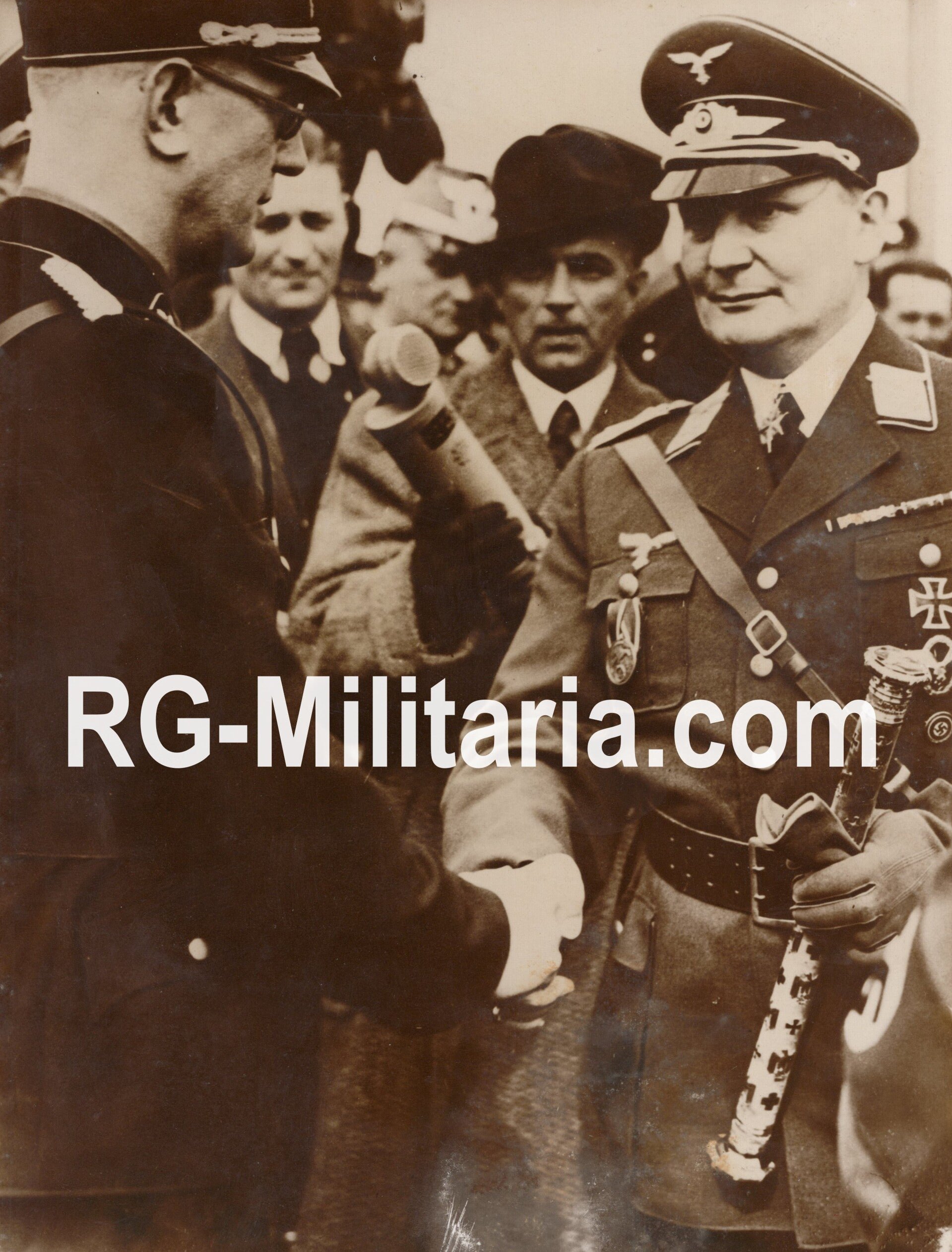 Arthur Seyss-Inquart shaking the hand of Göring. Göring is wearing his Blutorden Einzelspange on his breast. The photo has some stains.
