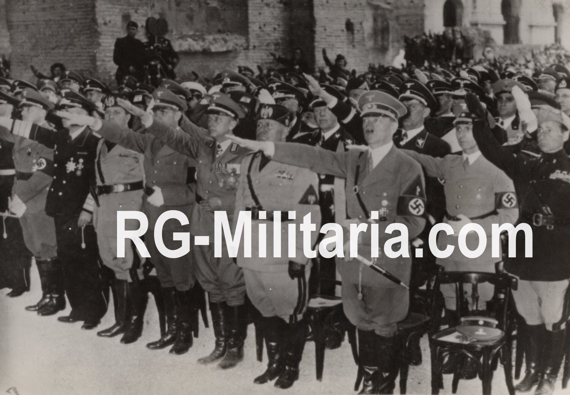 Original WW2 French Press Photo - Adolf Hitler and Benito Mussolini in Rome (1938)