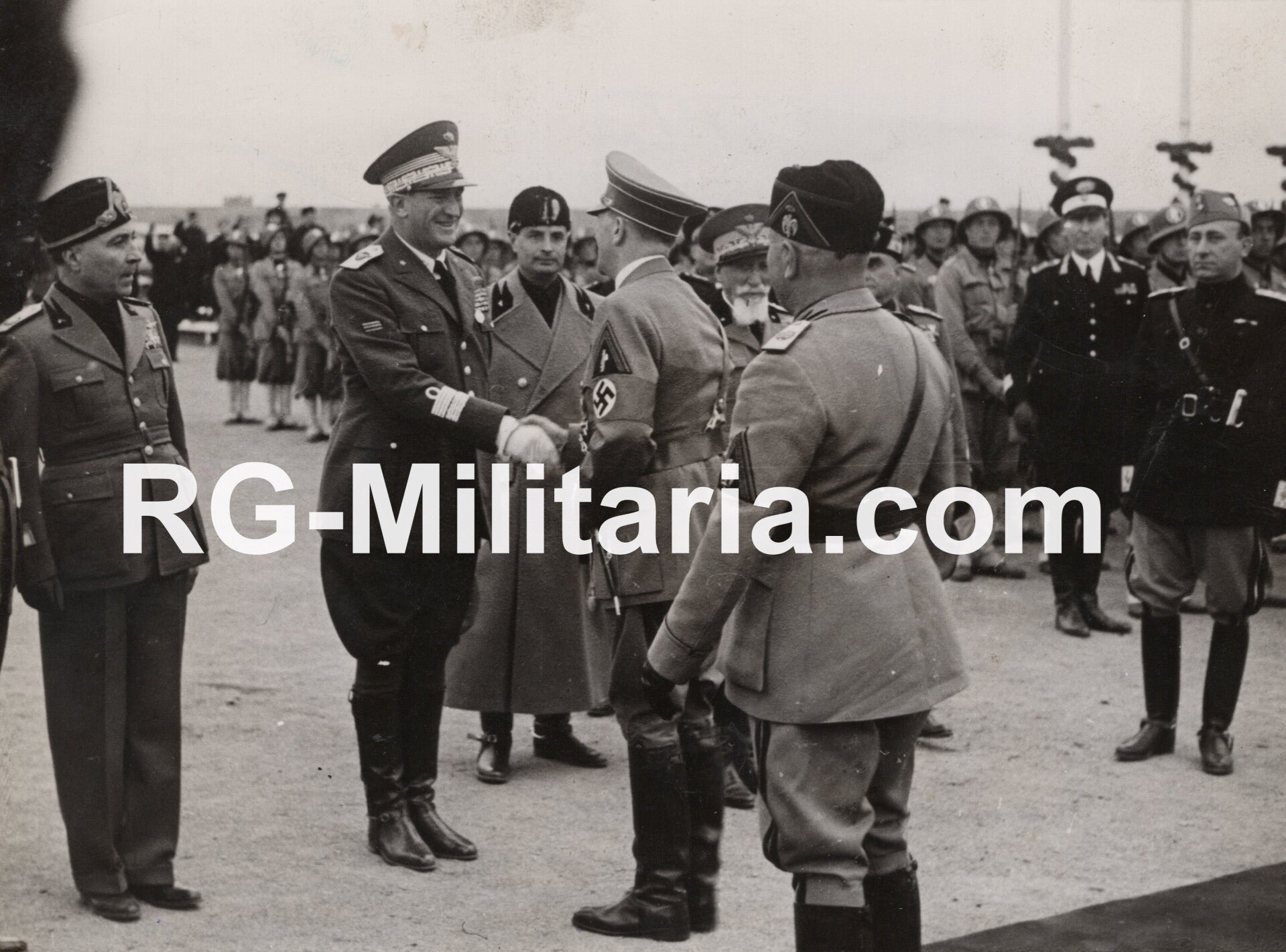 Originele Wo2 Franse Persfoto - Adolf Hitler met Benito Mussolini ontmoeten Rodolfo Graziani (1938)