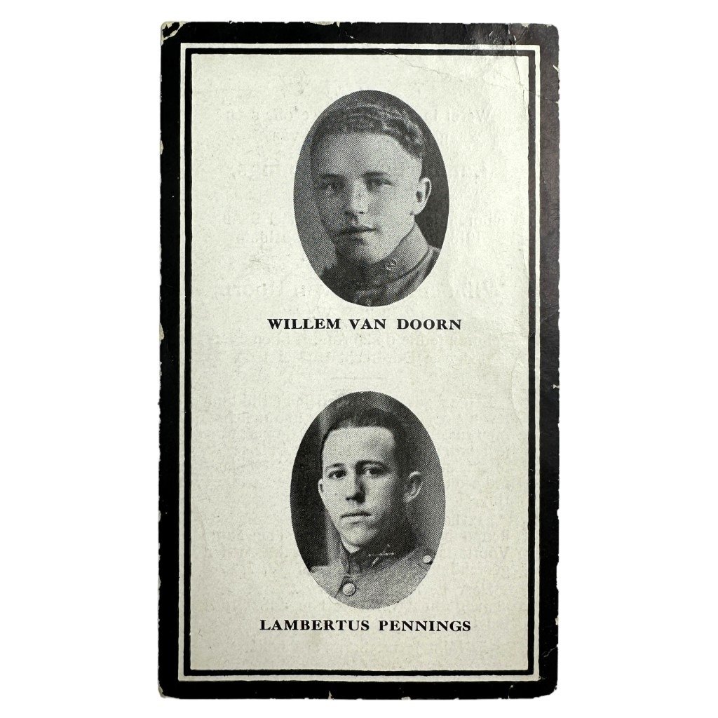 Op het bidprentje staan Lambertus J. Pennings (14. R.A.) en Wilhelmus J.G. van Doorn (2 R.W.).