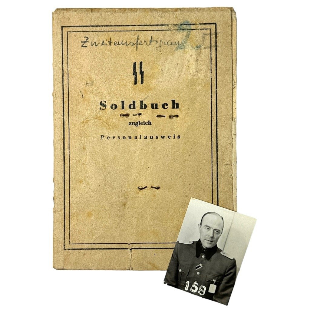 This Dutch Waffen-SS soldbuch is in good condition and belonged to the Dutch officer (SS-Untersturmführer) Heinrich (Hendrik) van Doornik.He served as an SS recruiter with the Ergänzungsstelle Nordwest – SS-Ersatzkommando Niederlande and was closely involved in recruiting Dutch volunteers into the Waffen-SS.He also worked at the SS-Hauptamt in Berlin in 1944 and obtained the Kriegsverdienstkreuz II class.He was born on April 14, 1910 in Amsterdam and died in 1967.He had a Dutch father and German mother.Along with the Soldbuch comes a photo of him during his imprisonment in 1945 and some additional copies of research about this officer.Dutch SS volunteer Soldbuchs are very rare and hard to find!A very rare Soldbuch of a Dutch SS officer for the collaboration or World War II collection!Article number: 13781Origineel WWII Nederlands Waffen-SS officiers soldbuchDit Nederlandse Waffen-SS soldbuch is in goede conditie en behoorde tot de Nederlandse officier (SS-Untersturmführer) Heinrich (Hendrik) van Doornik.Hij diende als SS rekruter bij de Ergänzungsstelle Nordwest – SS-Ersatzkommando Niederlande en was nauw betrokken bij het werven van de Nederlandse vrijwilligers in de Waffen-SS.Tevens werkte hij in 1944 op het SS-Hauptamt te Berlijn en behaalde het Kriegsverdienstkreuz II klasse.Hij werd geboren op 14 april 1910 in Amsterdam en overleed in 1967.Hij had een Nederlandse vader en Duitse moeder.Samen met het Soldbuch komt een foto van hem tijdens zijn gevangenschap in 1945 en een aantal kopieën van het researchwerk over deze officier.Nederlandse SS soldbuchen zijn zeer zeldzaam en lastig te vinden!Een zeer zeldzaam Soldbuch van een Nederlandse SS officier voor de collaboratie of Tweede Wereldoorlog collectie!
