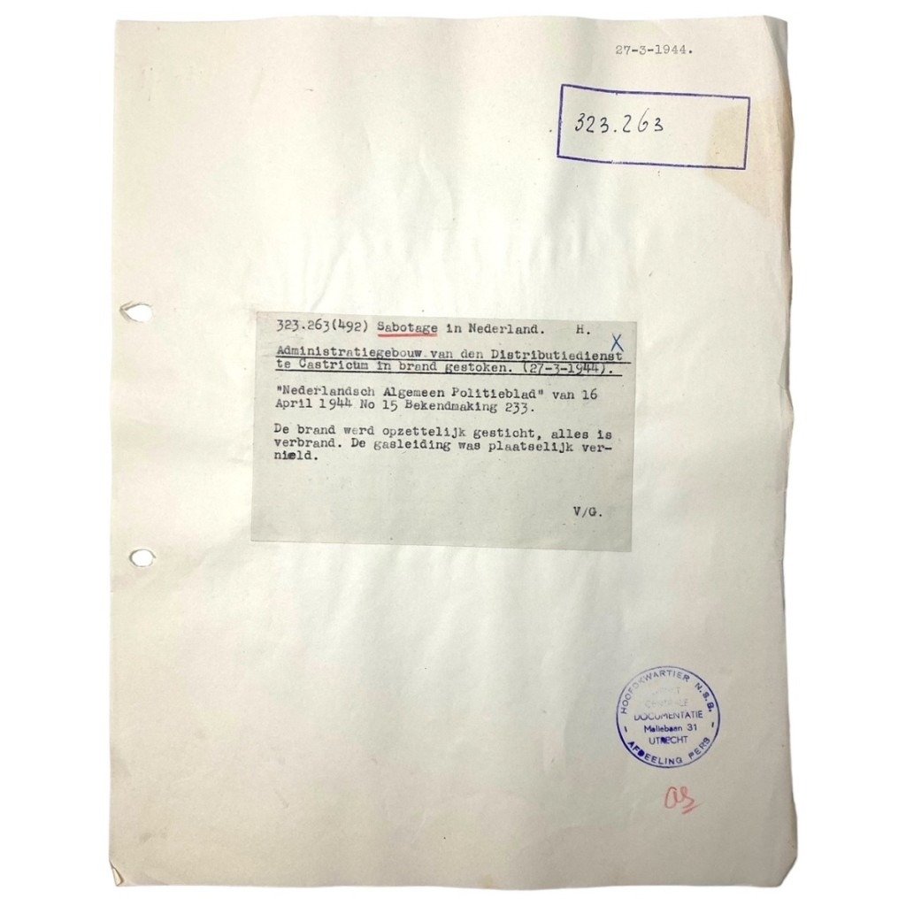 This Dutch NSB document is in good condition, dates from 1944 and contains information about a resistance action in Castricum.