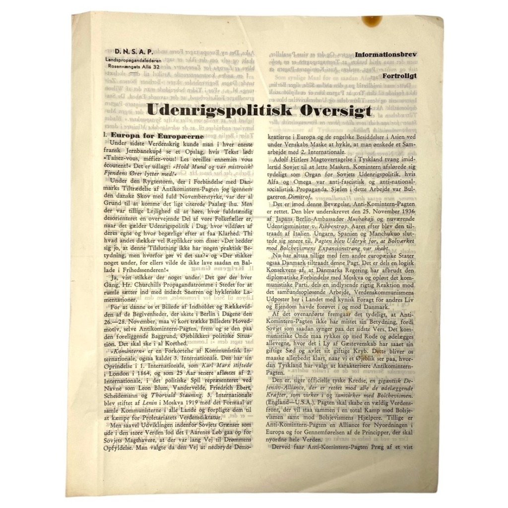 The Danish DNSAP document is in good condition and it is a confidential/secret foreign policy document.