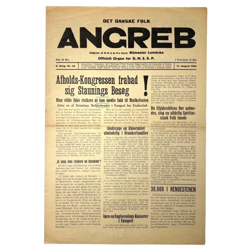Original early 1930s Danish D.N.S.A.P. newspaper 'Det Danske Folk ANGREB'