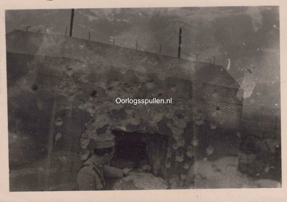 The Dutch army photo is in good condition, was taken and in May 1940 and it shows a Dutch officer in front of a damaged bunker.