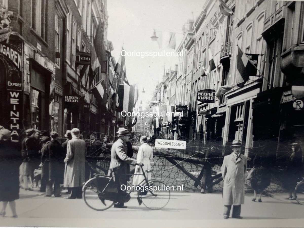 Originele WWII Nederlandse foto – Nederlandse vlaggen in mei 1945 in Den Haag
