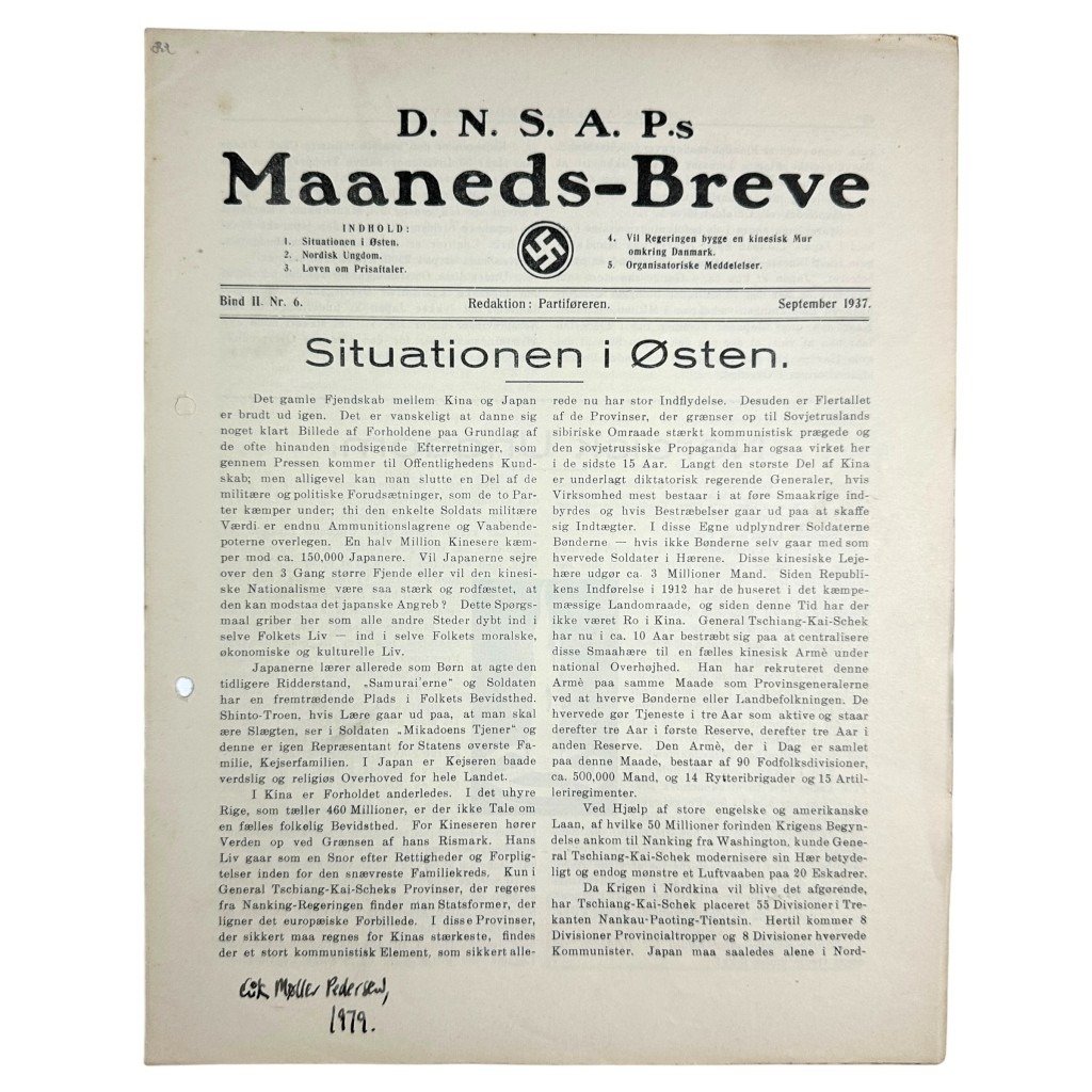 Het tijdschrift is in goede conditie en het betreft een Maaneds-Breve van de Deense collaboratiepartij DNSAP.
