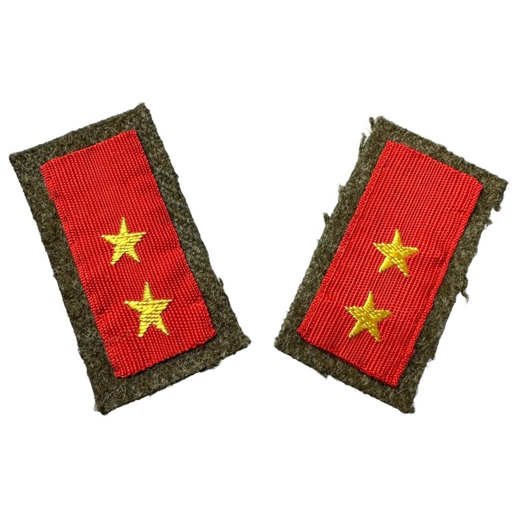This set of collar tabs are in good condition and were worn by a soldier 1st class in the Japanese Army during World War II.