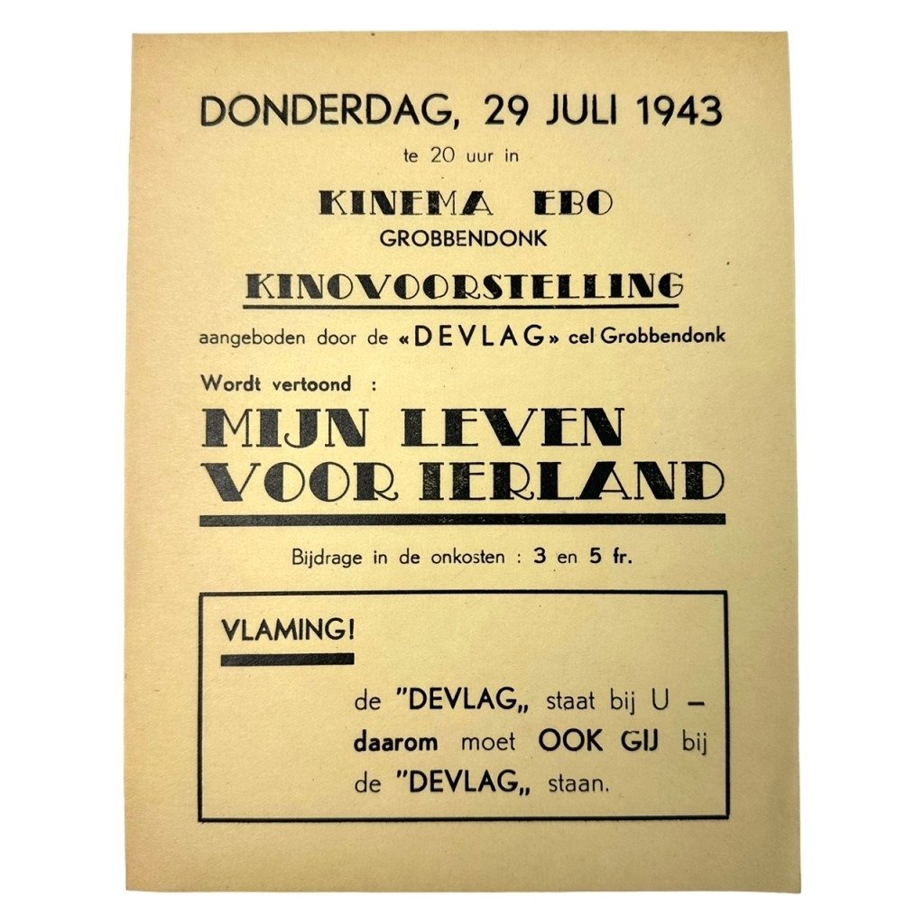 Original WWII Flemish DEVLAG collaboration flyer for a movie in Grobbendonk