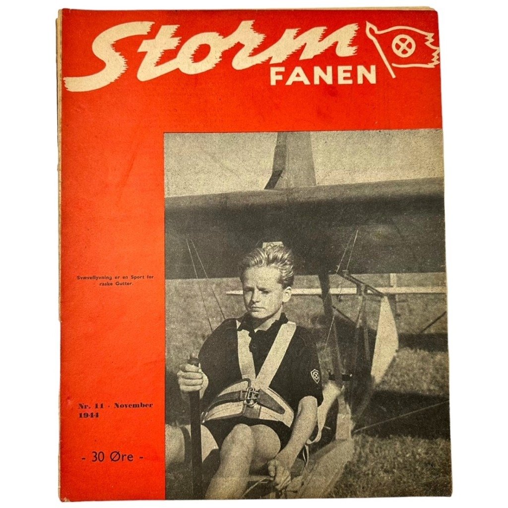 This Danish 'Stormfanen' magazine is in used condition and concerns the magazine for the Danish collaboration youth movement NSU, also known as the Nationalsocialistisk Ungdom – National Socialist Youth.Edition: Nr. 11 – November 1944NSU (Nationalsocialistisk Ungdom – National Socialist Youth) was initially founded in October 1932, after the parent party DNSAP (Dansk Nationalsocialistisk Arbejder Parti – Danish National Socialist Workers Party) was reorganized.Party members under the age of 18 were split off from the SA into an organization for themselves.A rare magazine for the Danish collaboration collection!Article number:11020Origineel WWII Deens NSU 'Stormfanen' tijdschrift– Nr. 11 – November 1944Het Deense 'Stormfanen' tijdschrift is in gebruikte conditie en betreft het tijdschrift voor de Deense collaboratie jeugdbeweging NSU, ook wel bekend als de Nationalsocialistisk Ungdom – Nationaal Socialistische Jeugd.Editie: Nr. 11 – November 1944NSU (Nationalsocialistisk Ungdom – Nationaal Socialistische Jeugd) werd aanvankelijk opgericht in oktober 1932, nadat de moederpartij DNSAP (Dansk Nationalsocialistisk Arbejder Parti – Deense Nationaal Socialistische Arbeiderspartij) was gereorganiseerd.De partijleden die jonger waren dan 18 jaar werden van de SA afgesplitst in een organisatie voor henzelf. Een zeldzaam tijdschrift voor de Deense collaboratie verzameling!