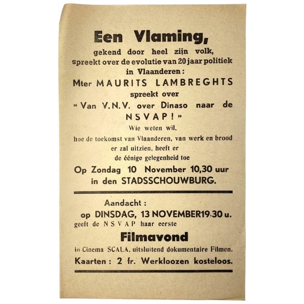 Originele WWII Vlaamse NSVAP flyer
