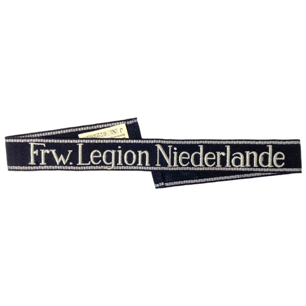 The cuff title is in mint condition and was produced for the enlisted men or volunteer within the SS-Freiwilligen Legion Niederlande.The SS-Freiwilligen Legion Niederlande was established in 1940 and excited mainly out of Dutch volunteers in the Waffen-SS.This particular cufftitle has its original full length and is complete with label on the back.In 1943 the The SS-Freiwilligen Legion Niederlande was renamed to the SS-Freiwilligen-Panzer-Grenadier-Brigade 'Nederland' and in 1945 this unit became the 23. SS Freiwilligen-Panzergrenadier-Division Nederland (niederländische Nr. 1).The SS-Freiwilligen Legion Niederlande had around 2000 volunteers in 1943 and they fought mainly on the Eastern Front.A unique Dutch Waffen-SS volunteer cuff title for the collaboration or World War II collection!Article number:10712