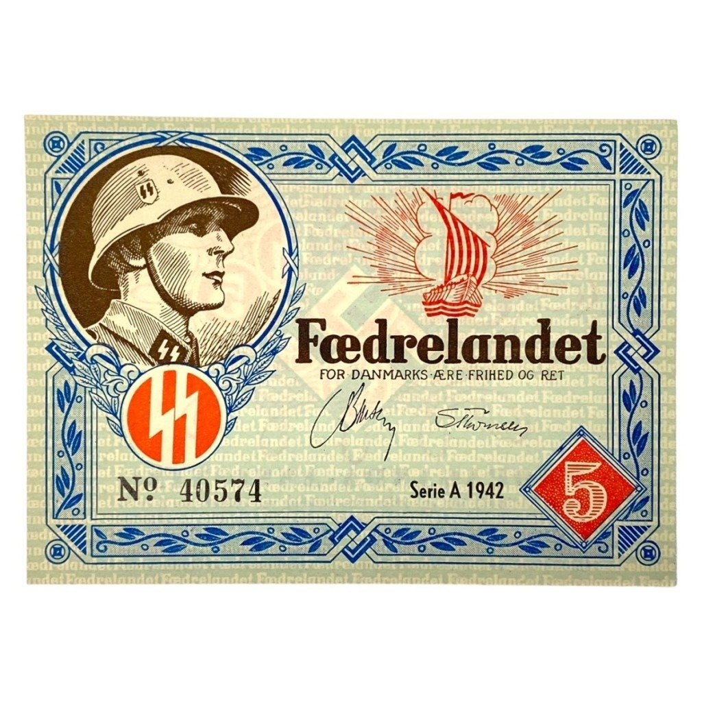 Original WWII Danish DNSAP propaganda note of 5 Kroners
