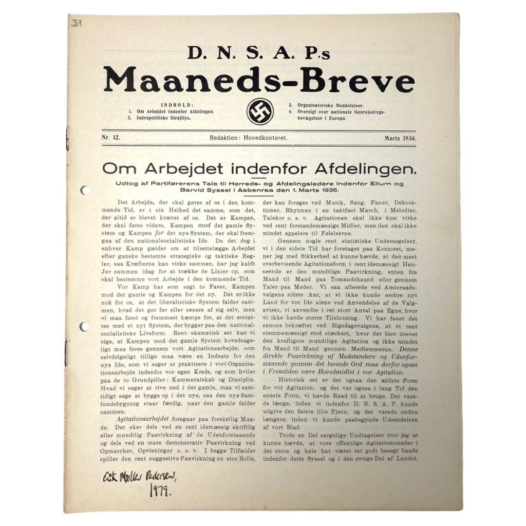 Original WWII Danish DNSAP Maaneds-Breve magazine – March 1936