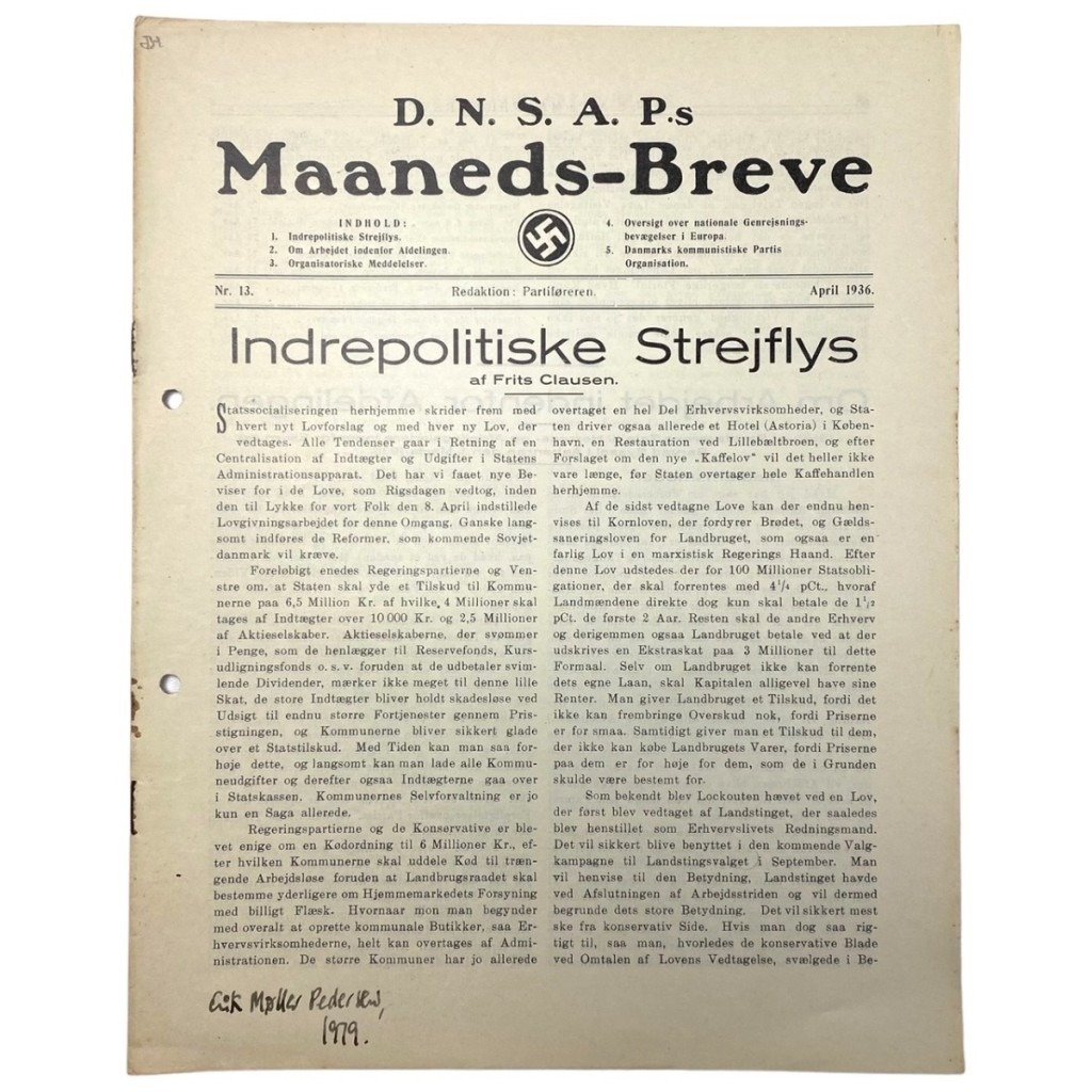 The magazine is in used condition and it is a Maaneds-Breve from the Danish collaboration party DNSAP.