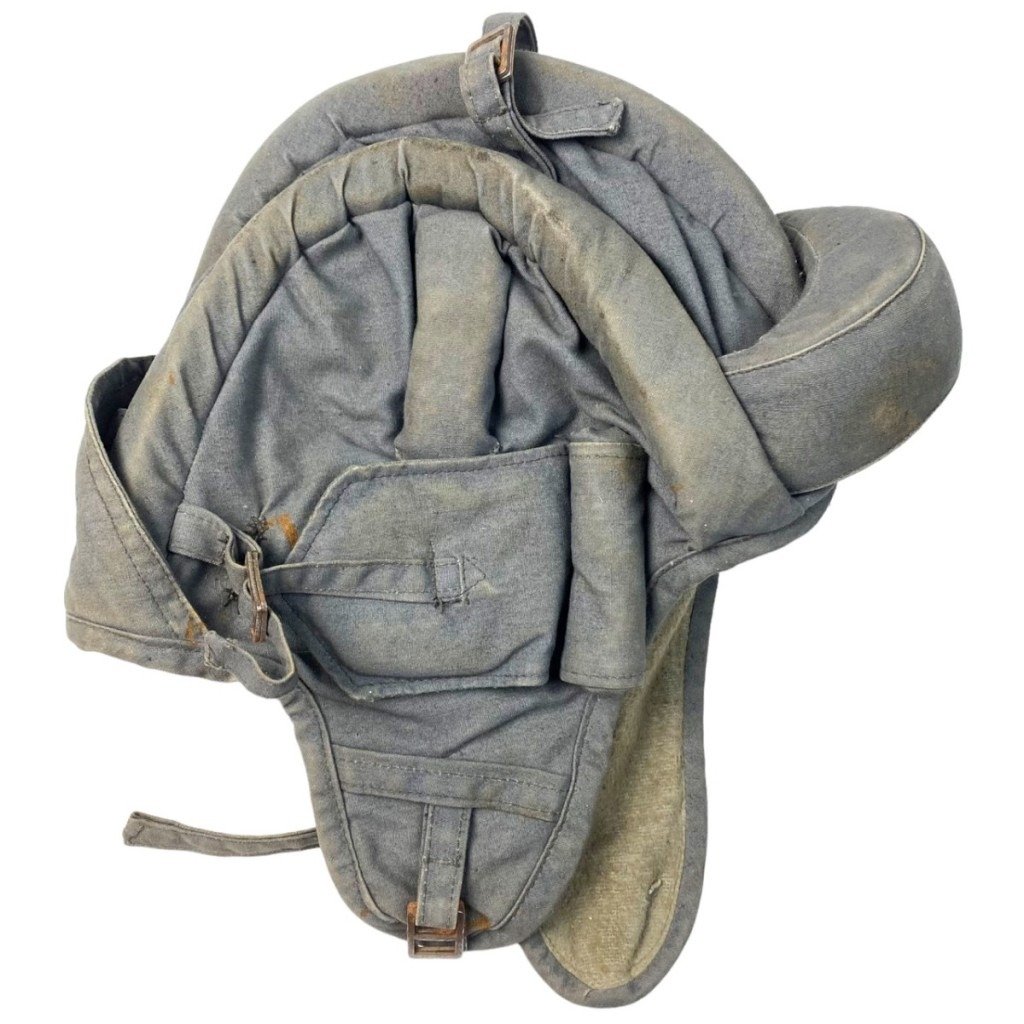 The Russian tank helmet is in worn condition and it is a Model 1937 (Type 2) which is produced with grey wool inner lining and a 'Zirka' sailcloth on the outside.