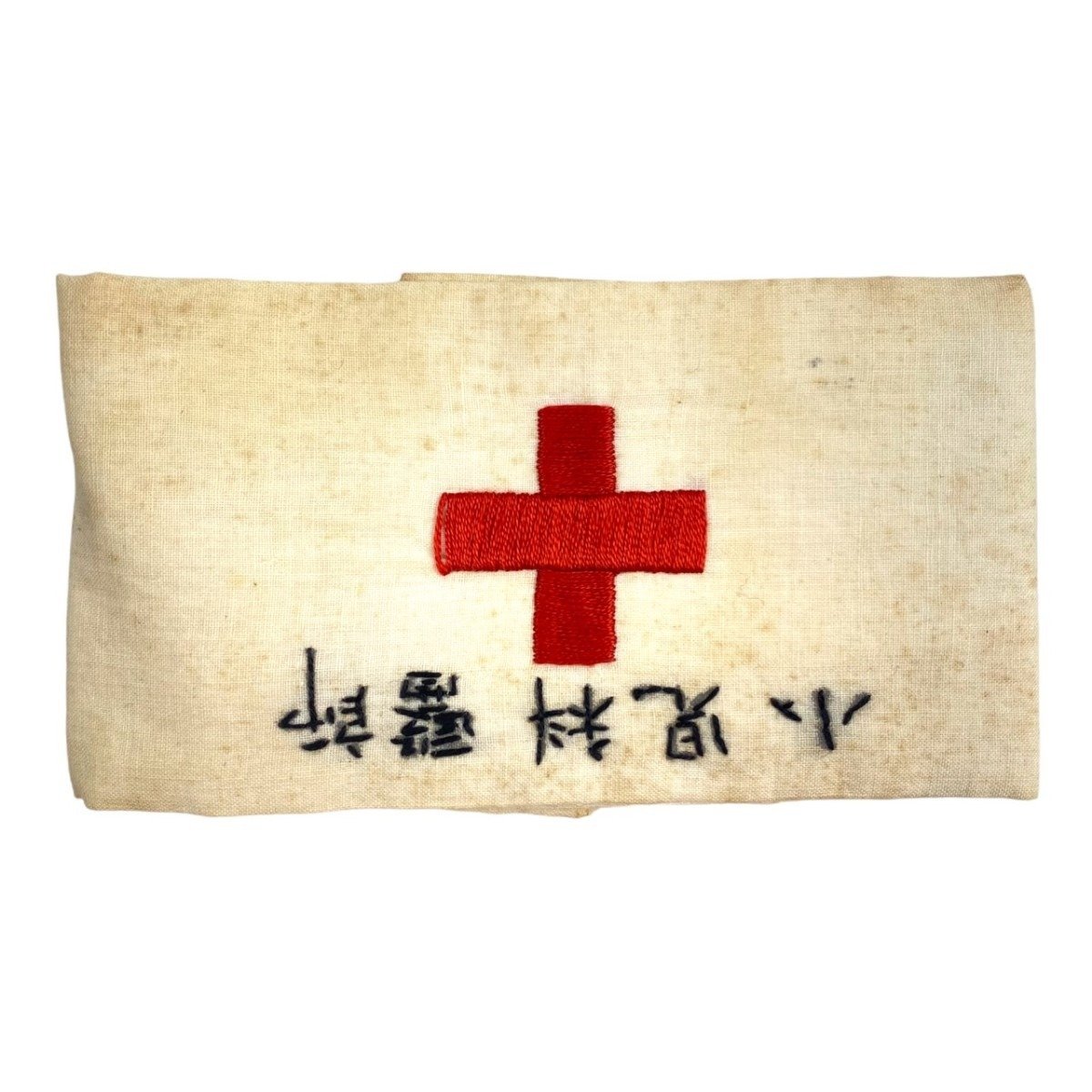 The Japanese armband is in used condition and was worn by a pediatrician.