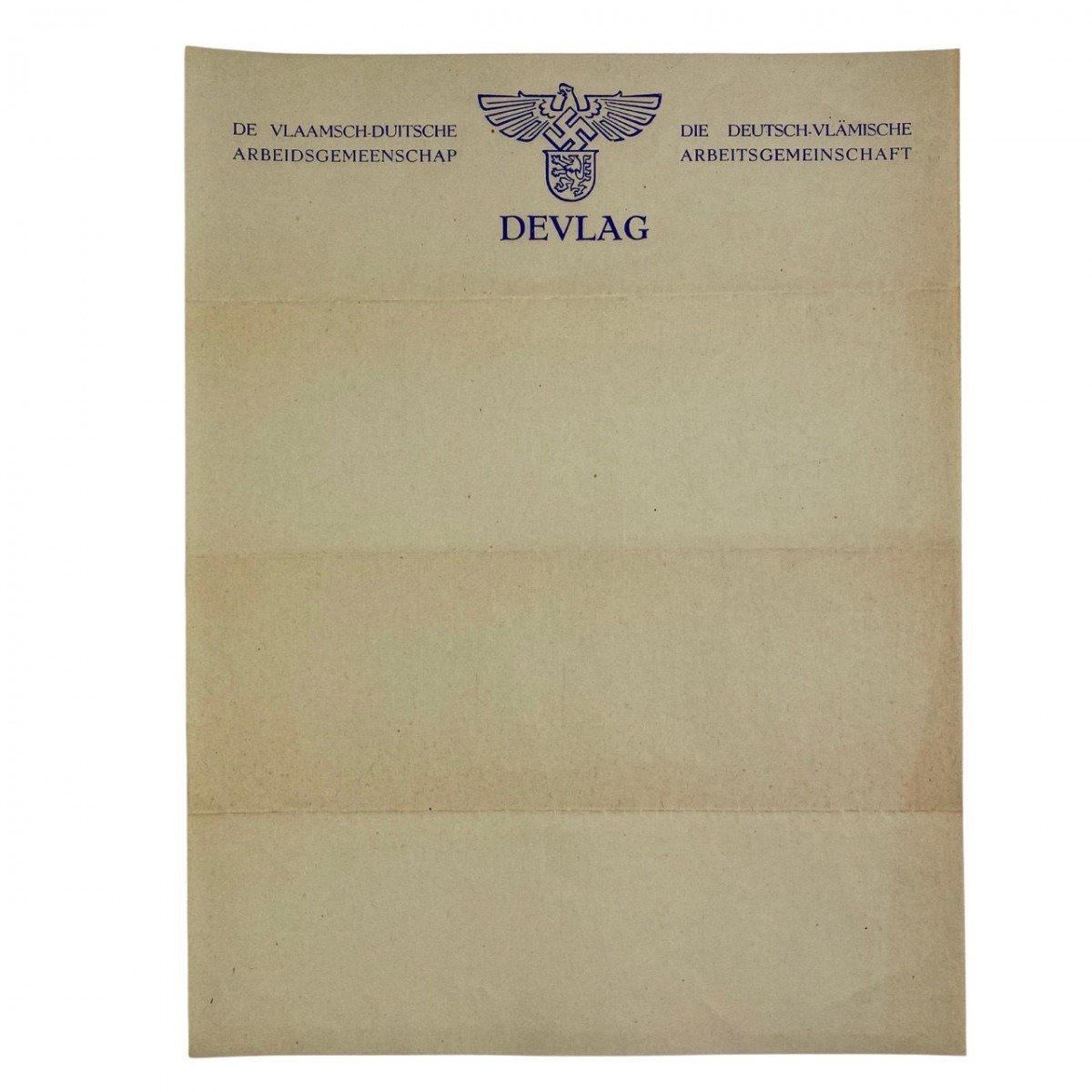Het briefpapier is in ongebruikte conditie en werd geproduceerd voor de Vlaamse collaboratie organisatie 'DeVlag'.