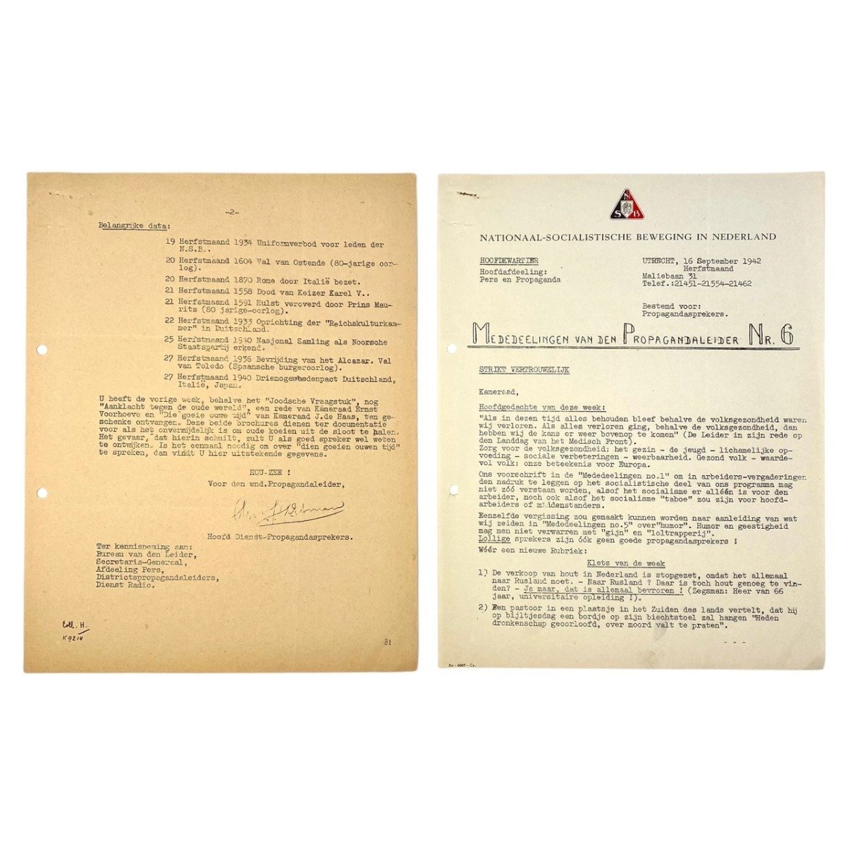 Origineel WWII Nederlands NSB document 'Mededelingen van de Propagandaleider'