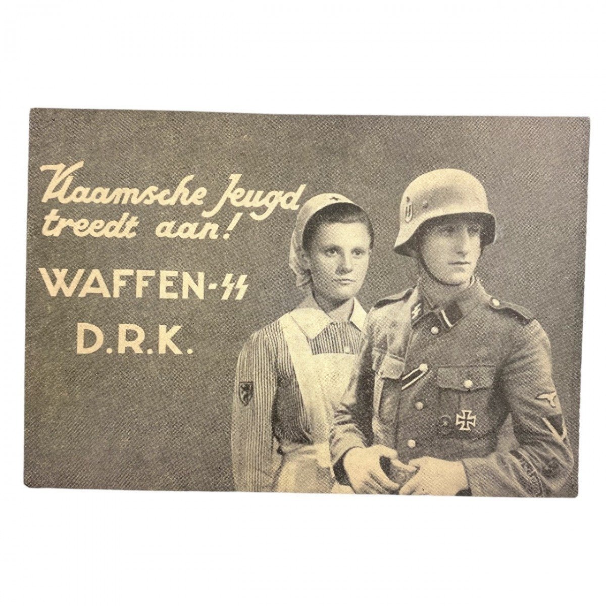 De postkaart is in goede conditie en werd gebruikt om Vlaamse meisjes te rekruten voor de Vlaamse DRK en Vlaamse mannen voor het Vlaamse Waffen-SS legioen.