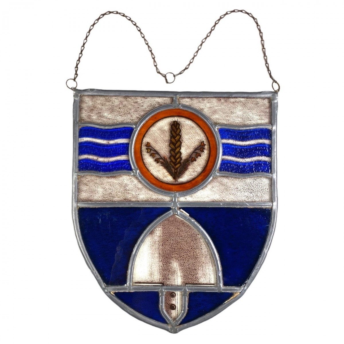 The symbol of the organization has been incorporated into the glass and the chain on the window hanger is also still present.