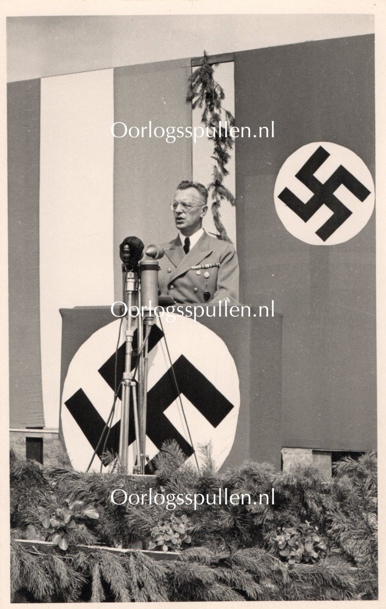 The photo is in good condition and shows SS-Gruppenführer Arthur Seyss-Inquart during a speech in the Netherlands.