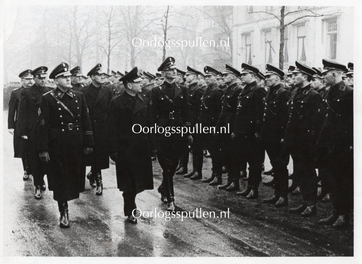 The Dutch SS photo is in good condition and shows Standartenführer Henk Feldmeijer and NSB leader Anton Mussert during the inspection of the Dutch SS in The Hague.