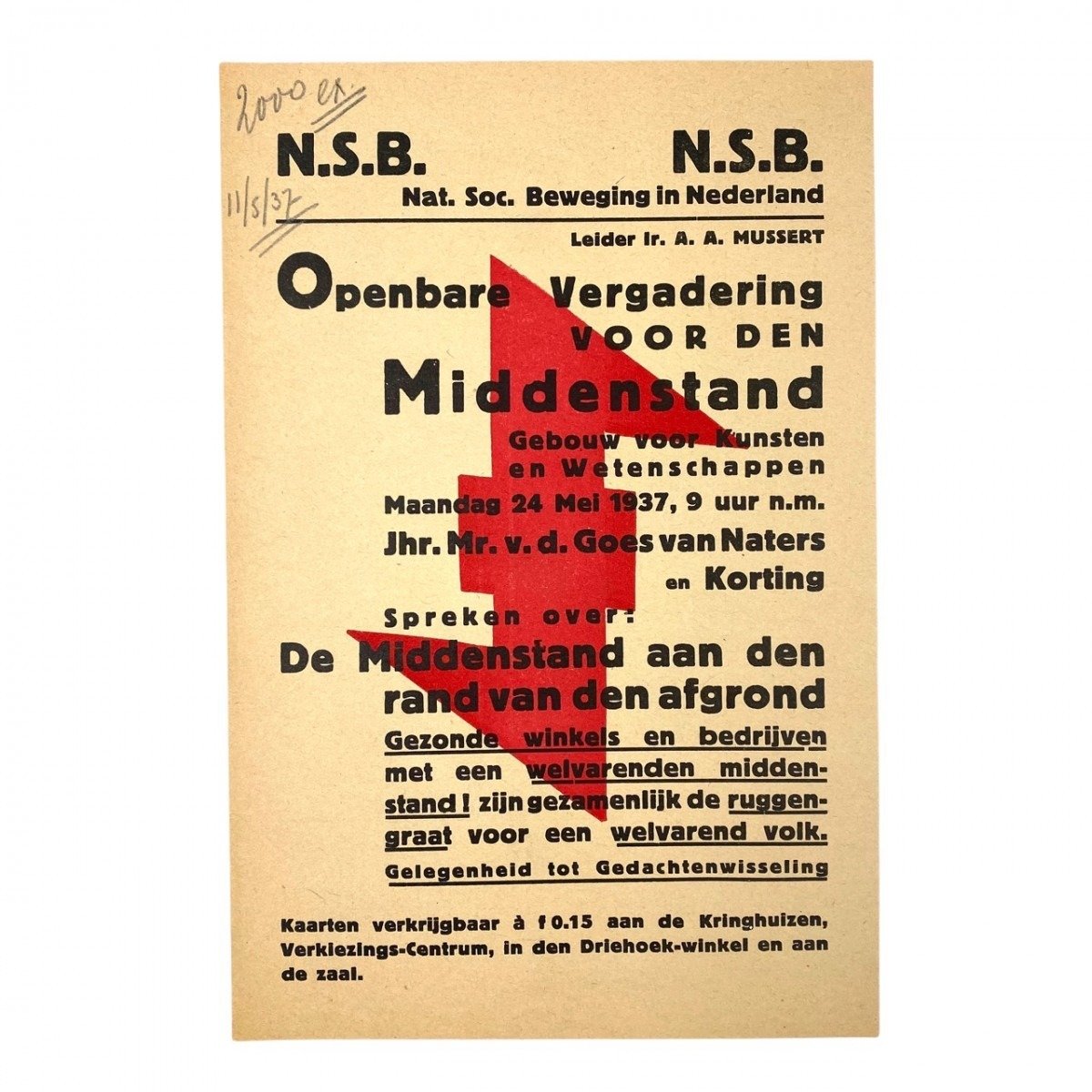 Originele WWII Nederlandse NSB flyer 'Stem Mussert'