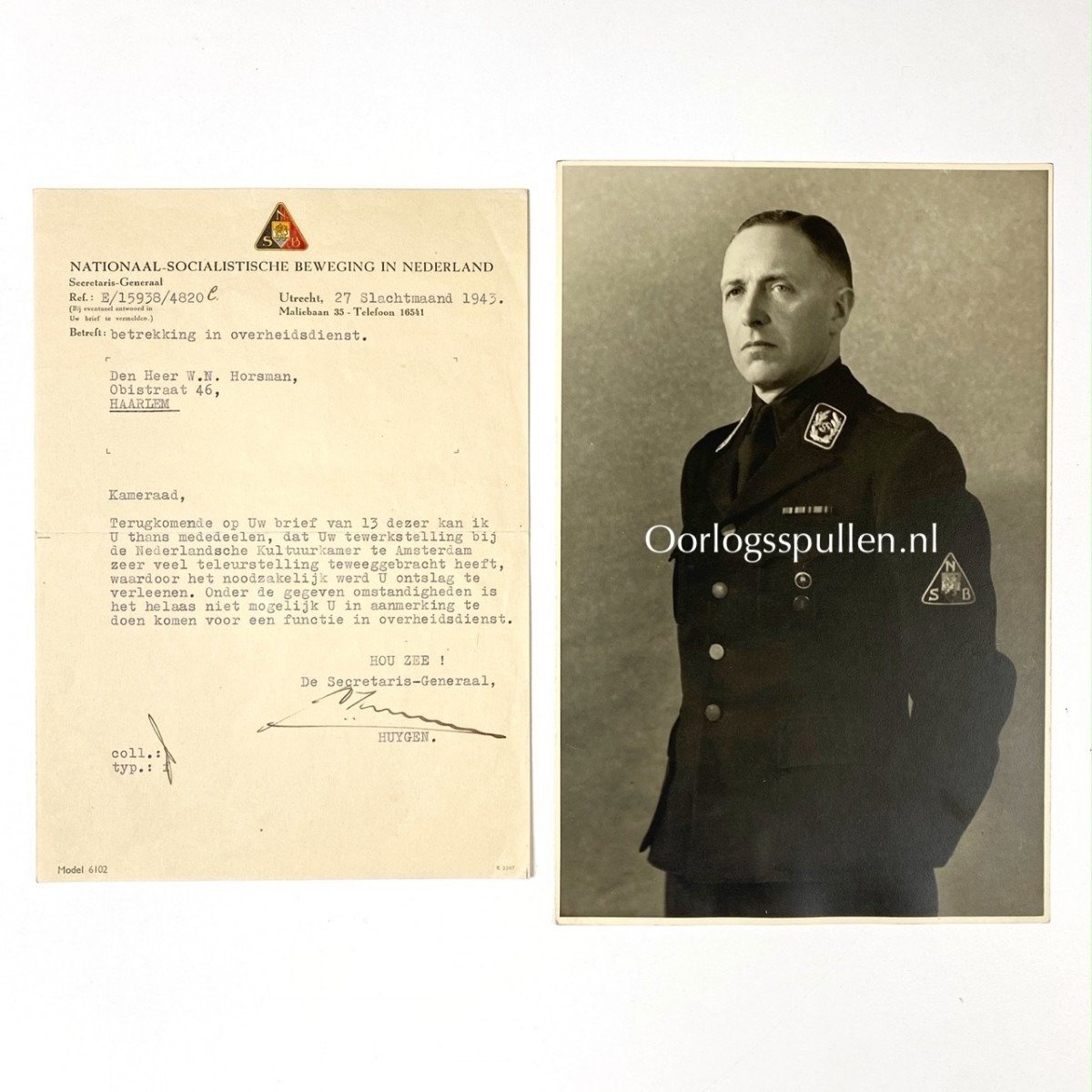 Originele WWII NSB foto en gesigneerde brief Carolus Huygen