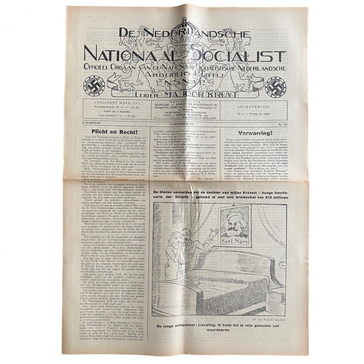 The newspaper is in good condition and belonged to the Dutch collaboration party the N.S.N.A.P. (Nationaal Socialistische Nederlandse Arbeiders Partij).
