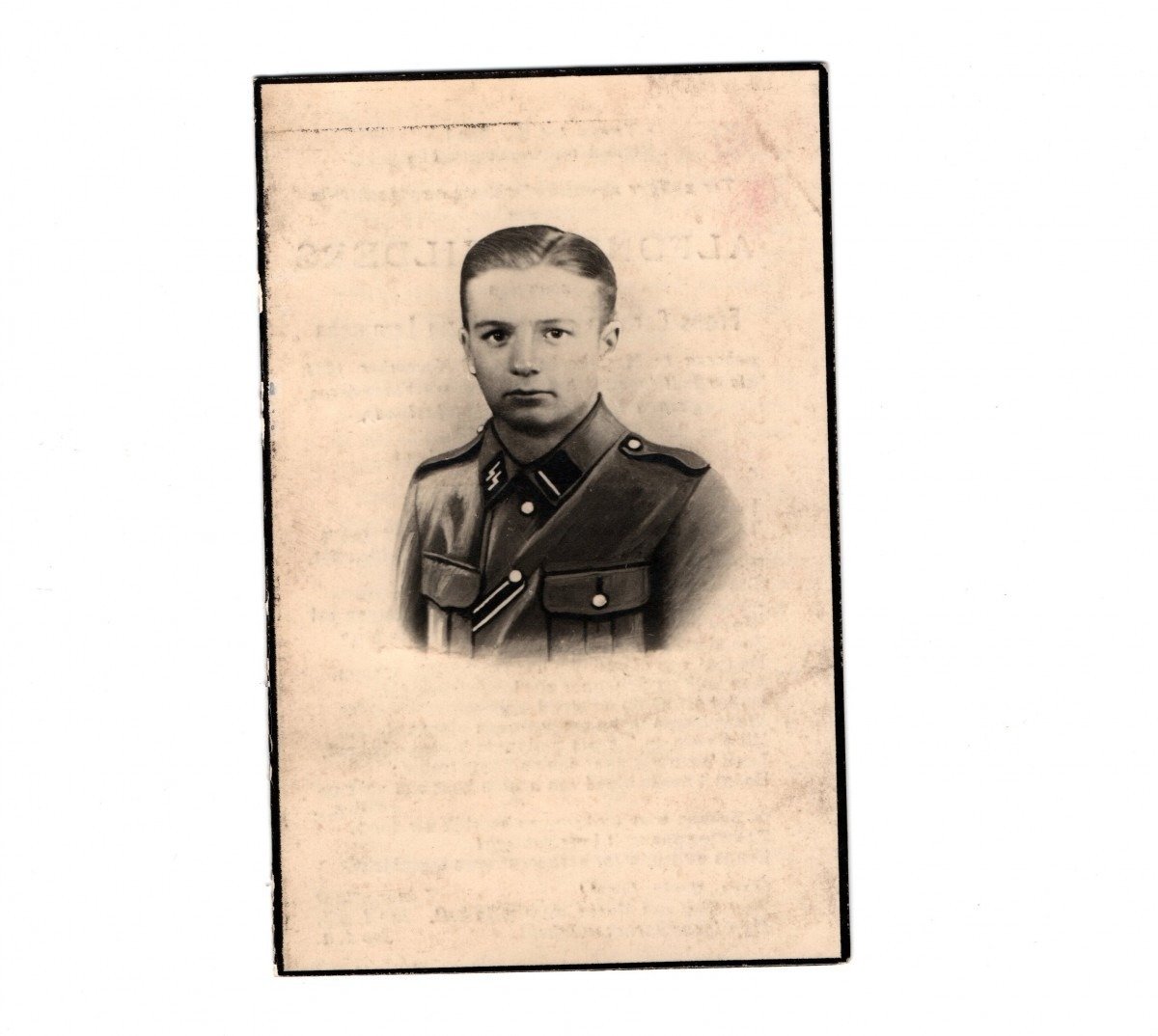 The death card is in good condition and belonged to a Belgian Waffen-SS volunteer Alfons Schilders.
