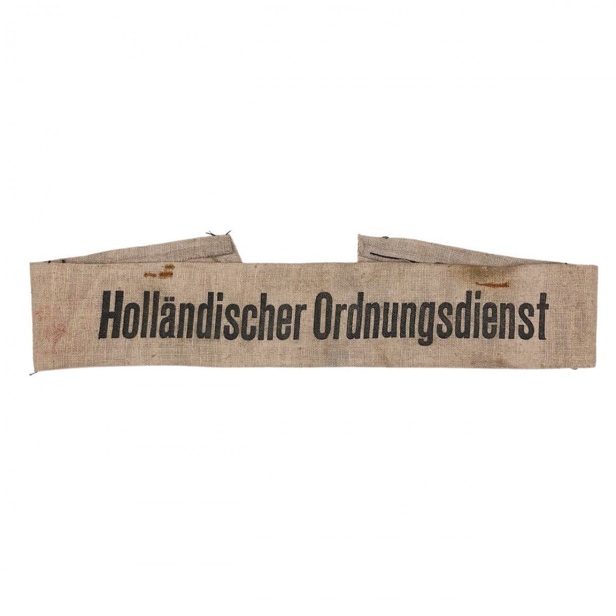 The cuff title is in worn and good condition and belonged to the 'Holländischer Ordnungsdienst'.