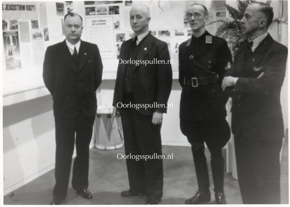 The photo is in good condition and shows the NSB leader Anton Mussert, Max Blokzijl and Organisor Mr Schuilenburg during the exhibition 'Herlevend Nederland'.