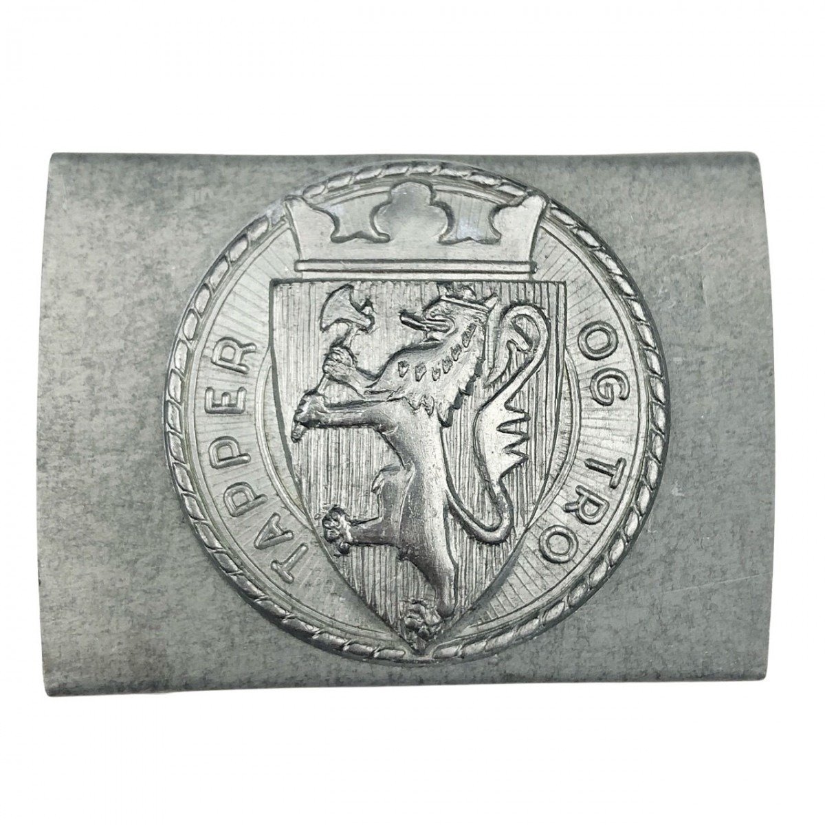 The buckle has the following inscription: Tapper og Tro – Courageous and faithful.