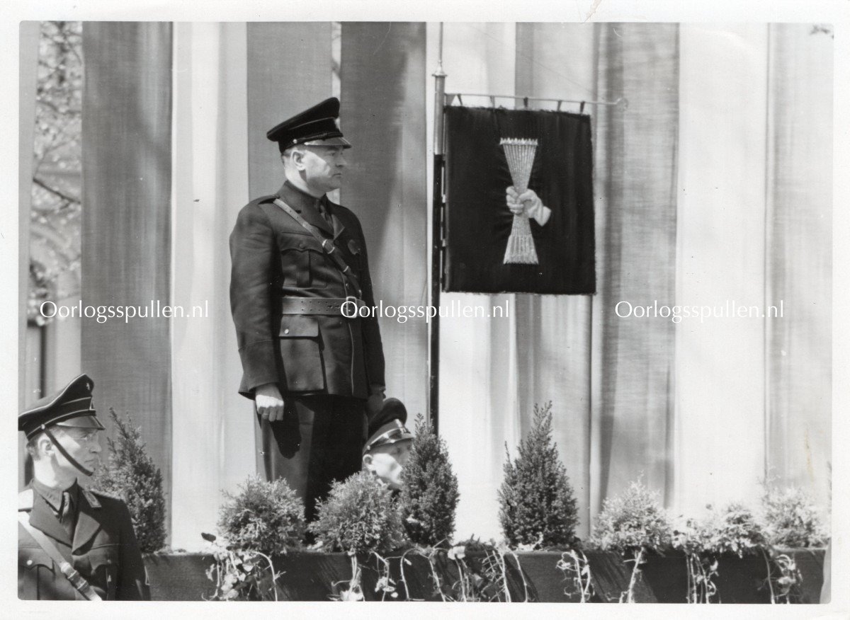 The photo is in good condition and it shows NSB leader Anton Mussert during a parade in the city of Utrecht.