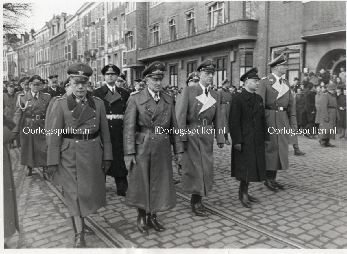 The photo includes SS-Gruppenführer Arthur Seyss-Inquart, NSB leader Anton Mussert, SS-Gruppenführer Rauter, Wehrmachtsbefehlshaber in den Niederlanden Friedrich Christiansen and many other high-ranking people.