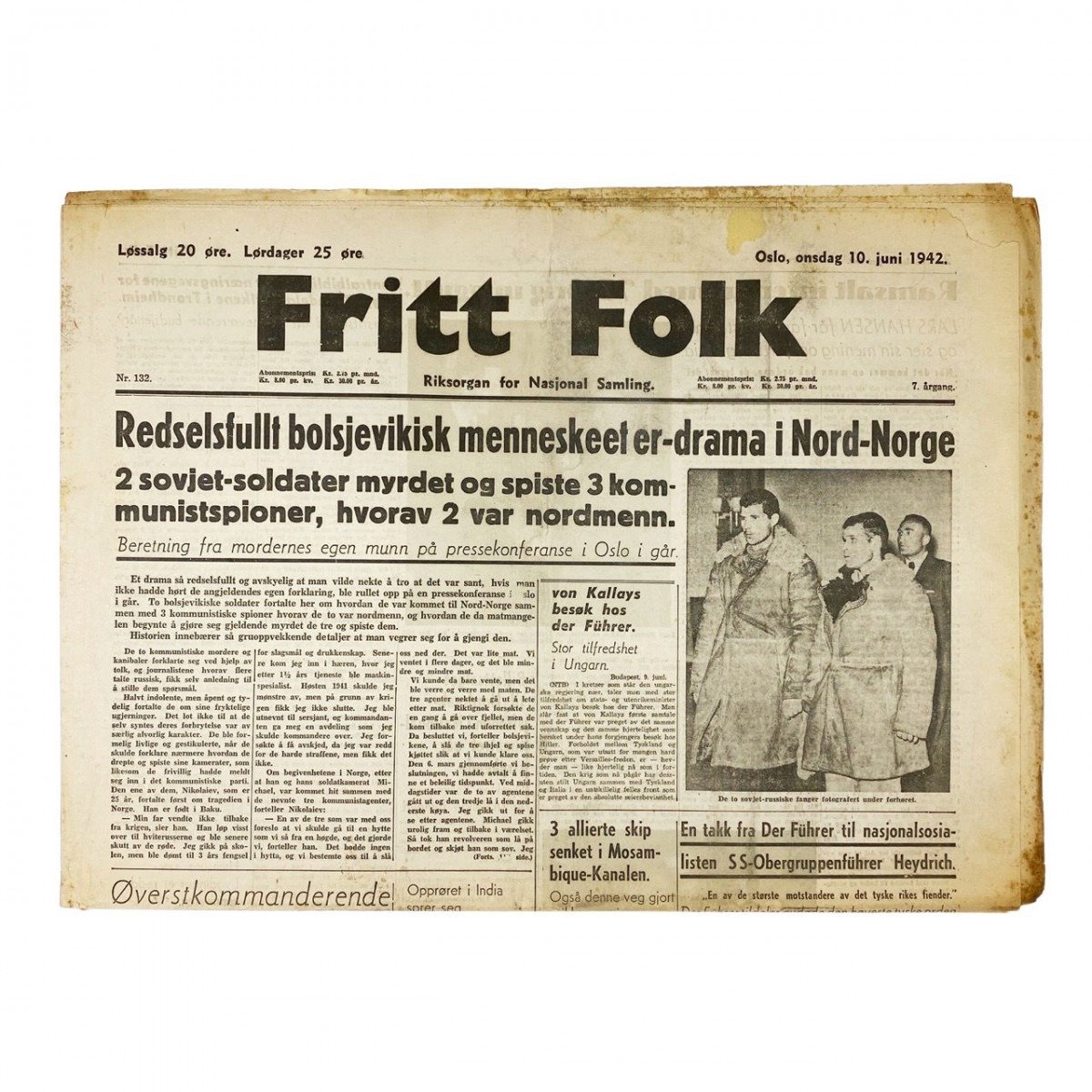 Original WWII Norwegian collaboration Nasjonal Samling newspaper β Fritt Folk